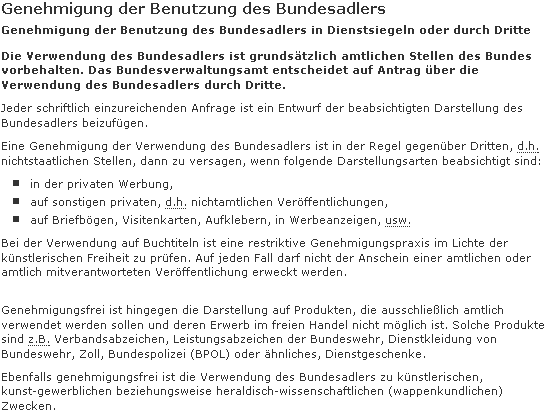 Kein Hinweis mehr bezüglich der Verwendung des Bundesadlers in der privaten Werbung. Auf meine Nachfrage bezüglich der Änderungen war man überrascht.